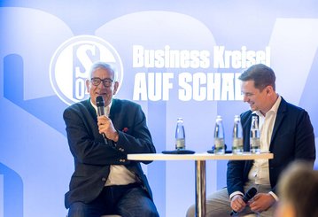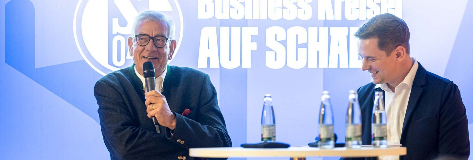 … wie er sich fühlte, als er im November 2017 als Verhandlungsführer von METALL NRW gemeinsam mit dem Schalke-Fan und Bezirksleiter der IG Metall Nordrhein-Westfalen, Knut Giesler, im Stadion von Borussia Dortmund Tarifverhandlungen führte - beide ausgestattet mit blau-weißen Fan-Utensilien,
