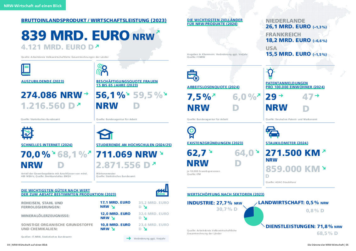 unternehmer nrw liefert Informationen zur Beschäftigungsentwicklung der NRW-Industrie, zur Industrieproduktion und Auftragseingängen in NRW, zum Arbeitsmarkt und Geschäftsklima.